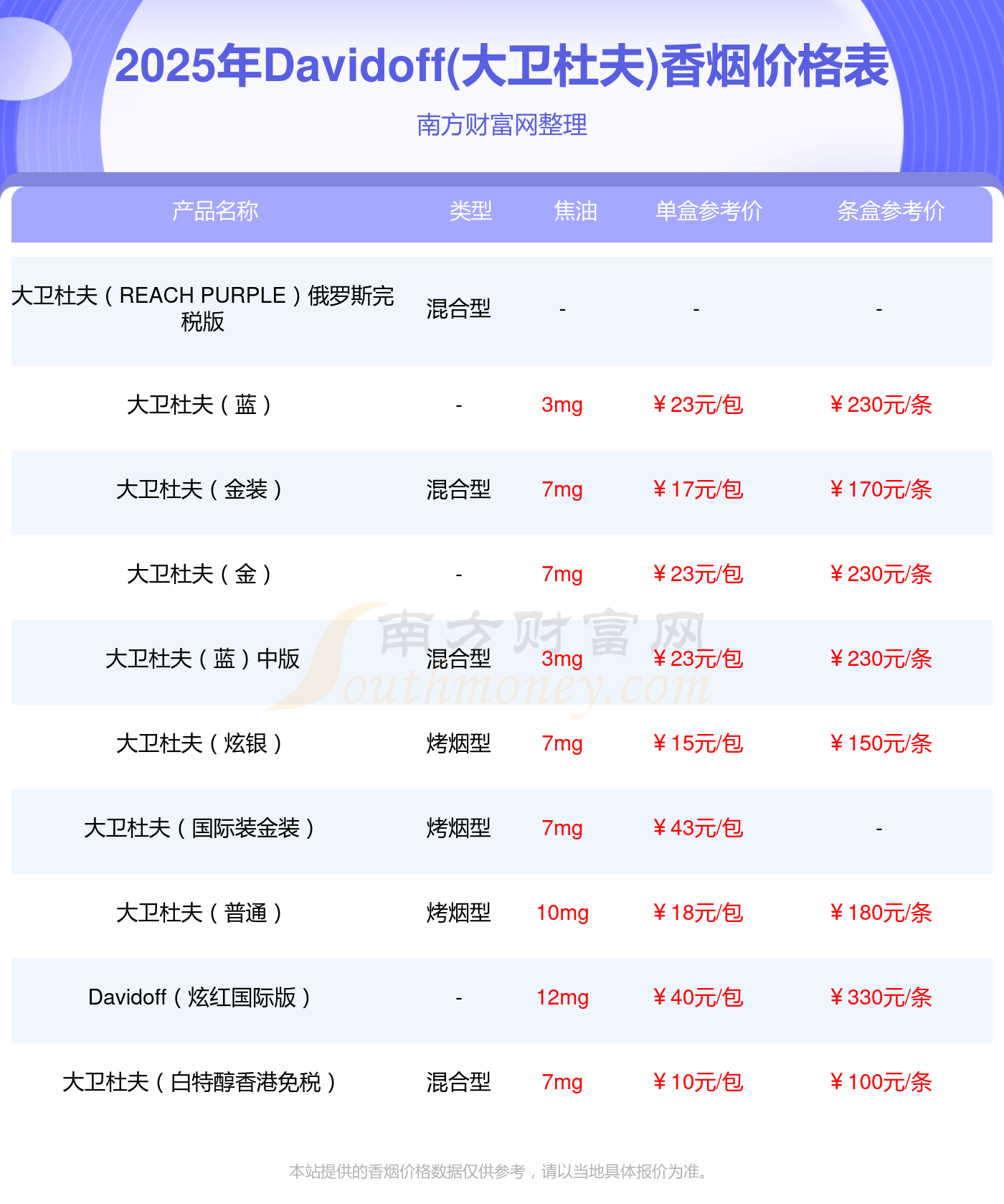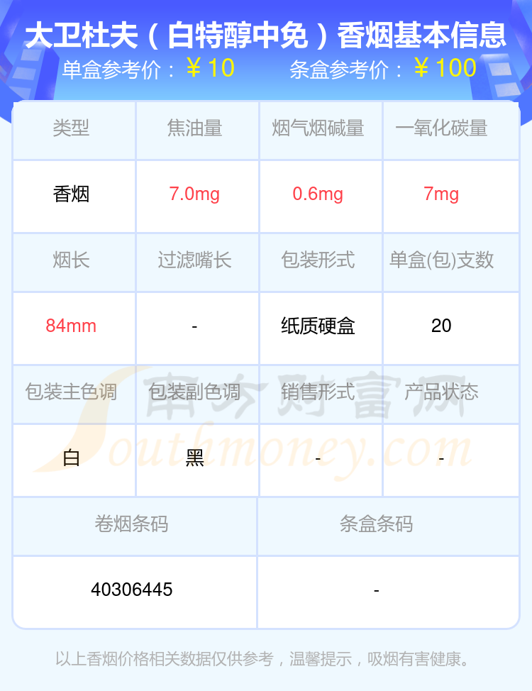 大衛(wèi)杜夫(白特醇中免)單盒參考價:10元