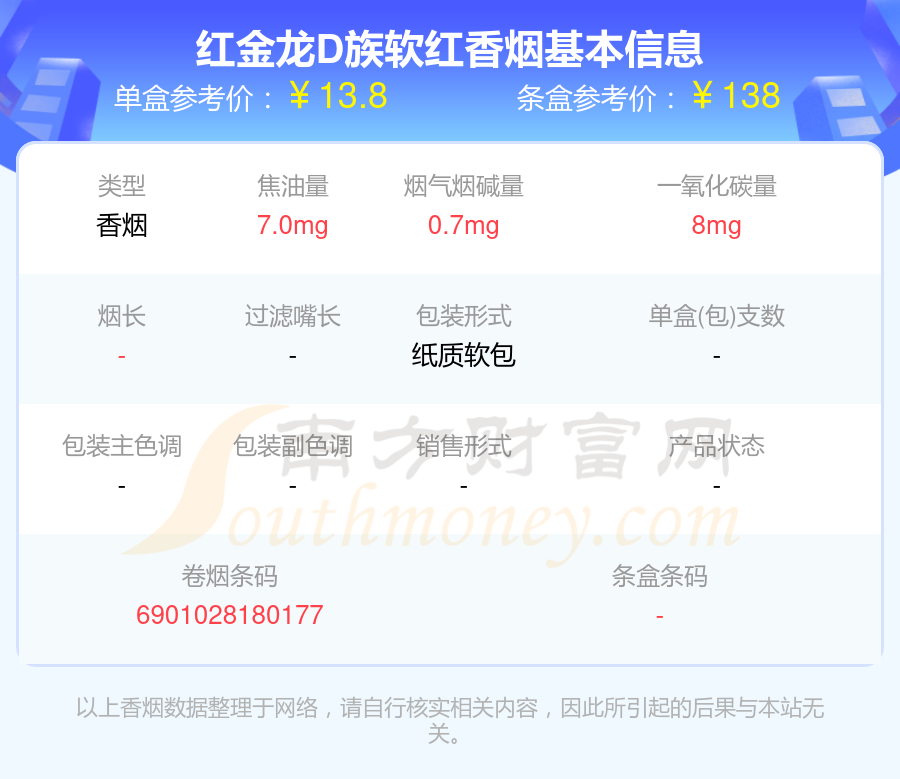 紅金龍D族軟紅單盒參考價(jià):13.8元