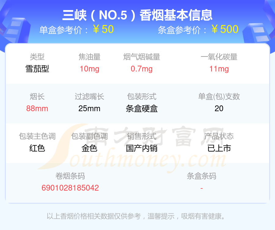 擇煙網(wǎng)為大家盤(pán)點(diǎn)了40~60元左右的三峽香煙,分別有三峽(NO.5)參考價(jià)50元/包、三峽NO.5雪茄參考價(jià)50元/包、三峽(MY10)參考價(jià)50元/包、三峽(NO.4)參考價(jià)45元/包等。