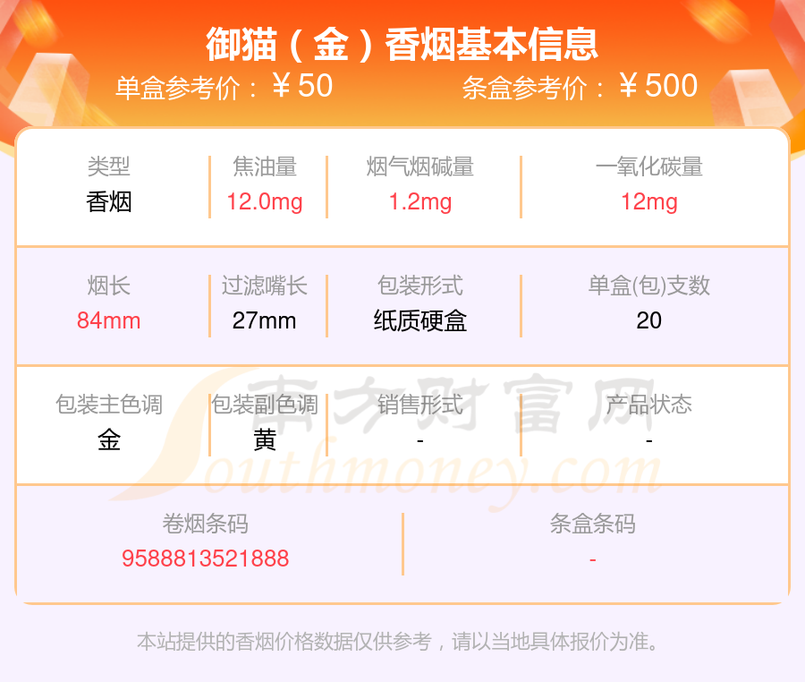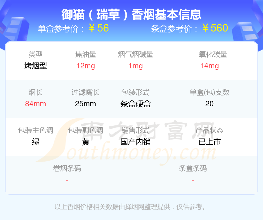 擇煙網(wǎng)為大家盤點(diǎn)了40元至80元的御貓香煙,有御貓(瑞草)、御貓(金)、御貓(王道)、御貓(藍(lán))等,詳細(xì)價(jià)格如下: