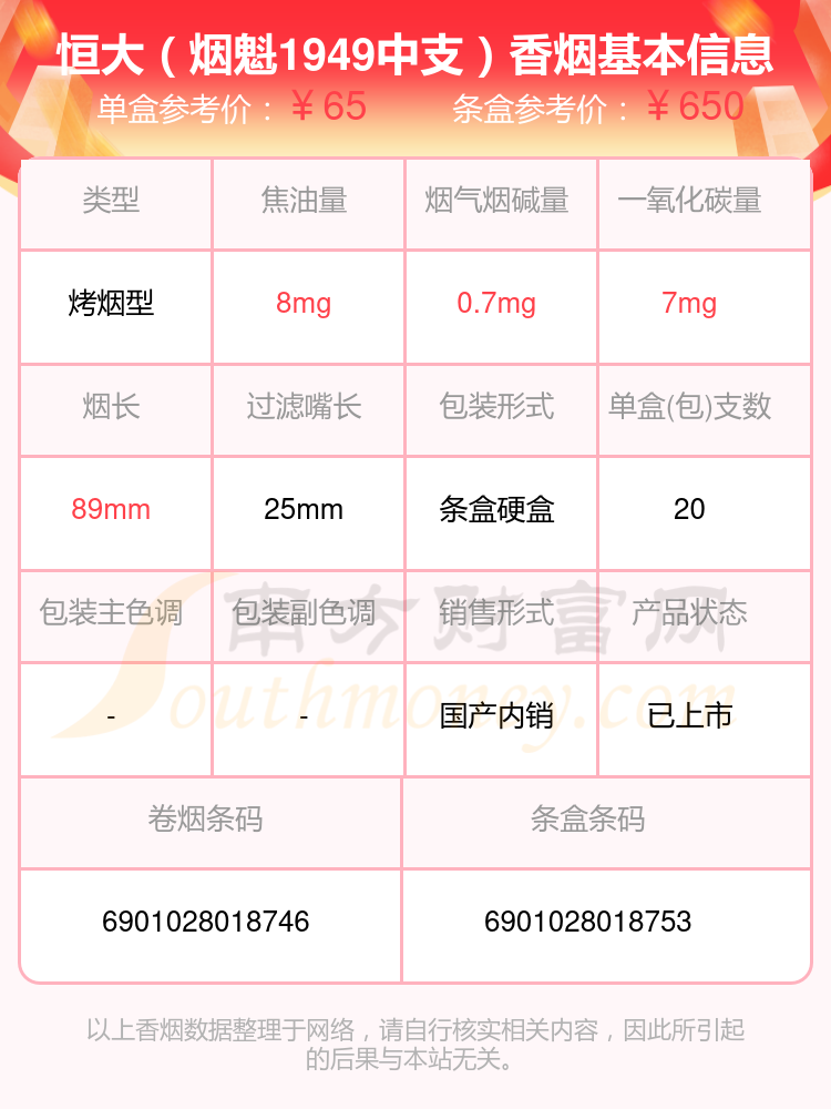 擇煙網(wǎng)為大家盤(pán)點(diǎn)了六十至八十元的恒大香煙,有恒大(煙魁1919)、恒大(煙魁1949)、恒大(煙魁1949中支)等,詳細(xì)價(jià)格如下: