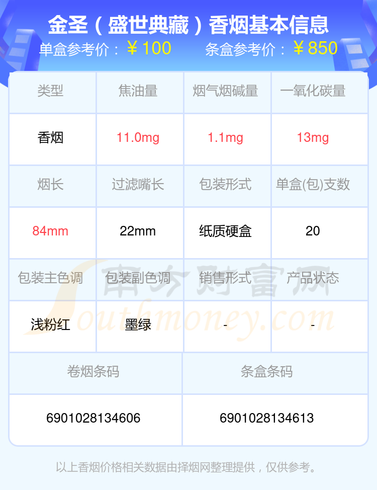 金圣(盛世典藏)條盒參考價(jià):850元