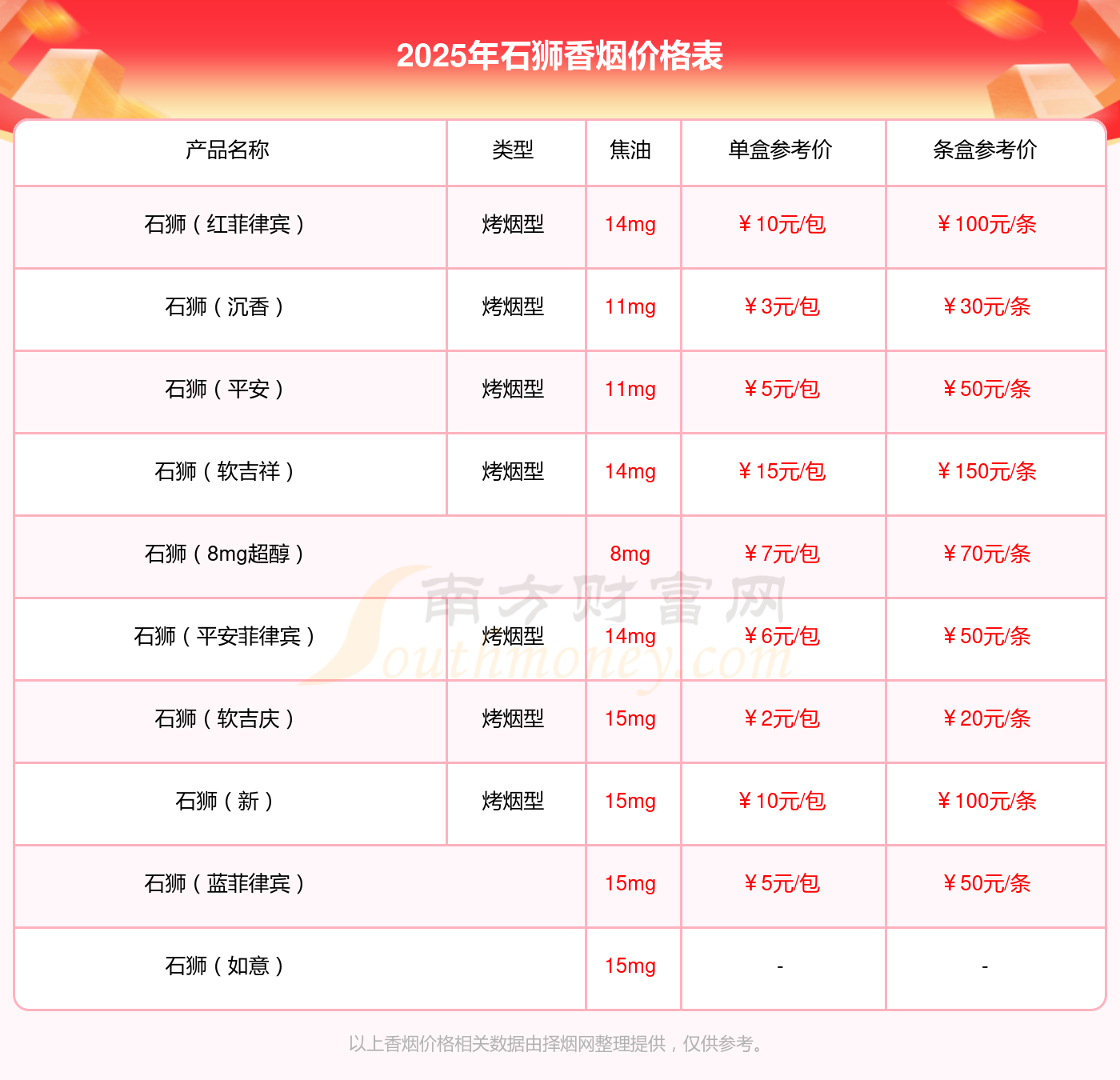 以上香煙數(shù)據(jù)整理于網(wǎng)絡(luò),請自行核實相關(guān)內(nèi)容,因此所引起的后果與本站無關(guān)。