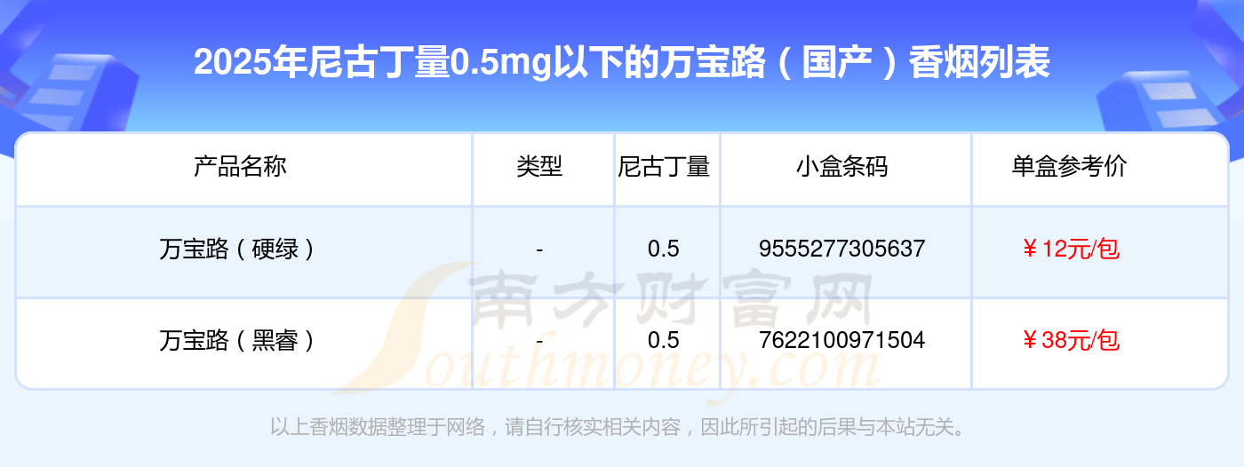 萬(wàn)寶路(國(guó)產(chǎn))香煙尼古丁量0.5mg以下的有哪些?擇煙網(wǎng)為大家整理提供,分別有: