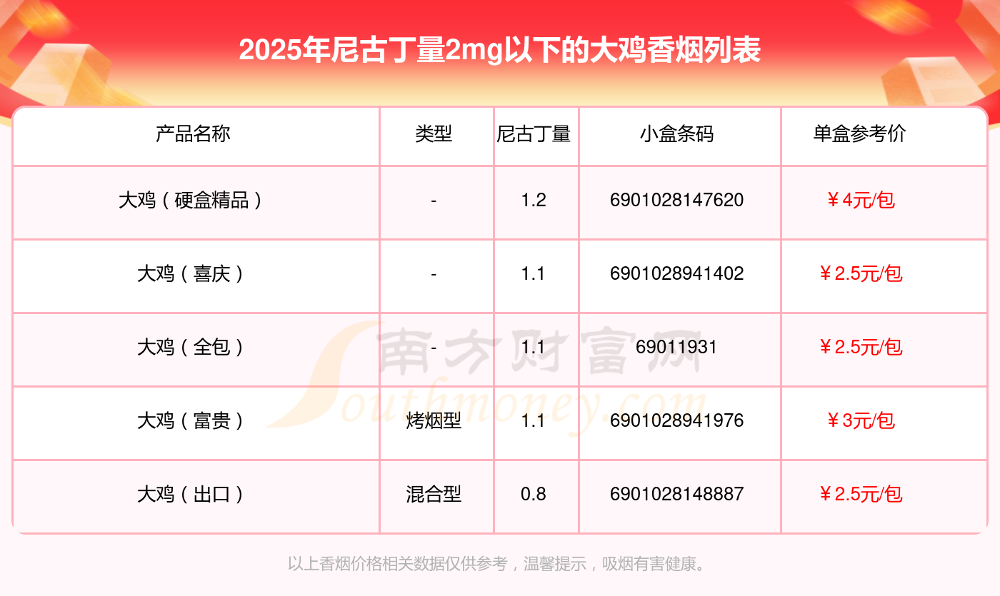 尼古丁量2mg以下的大雞香煙有哪些?擇煙網(wǎng)為大家整理盤點(diǎn),分別有: