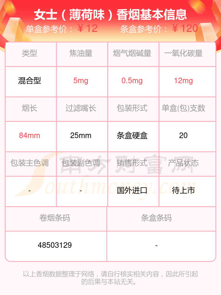 1、女士(薄荷味)