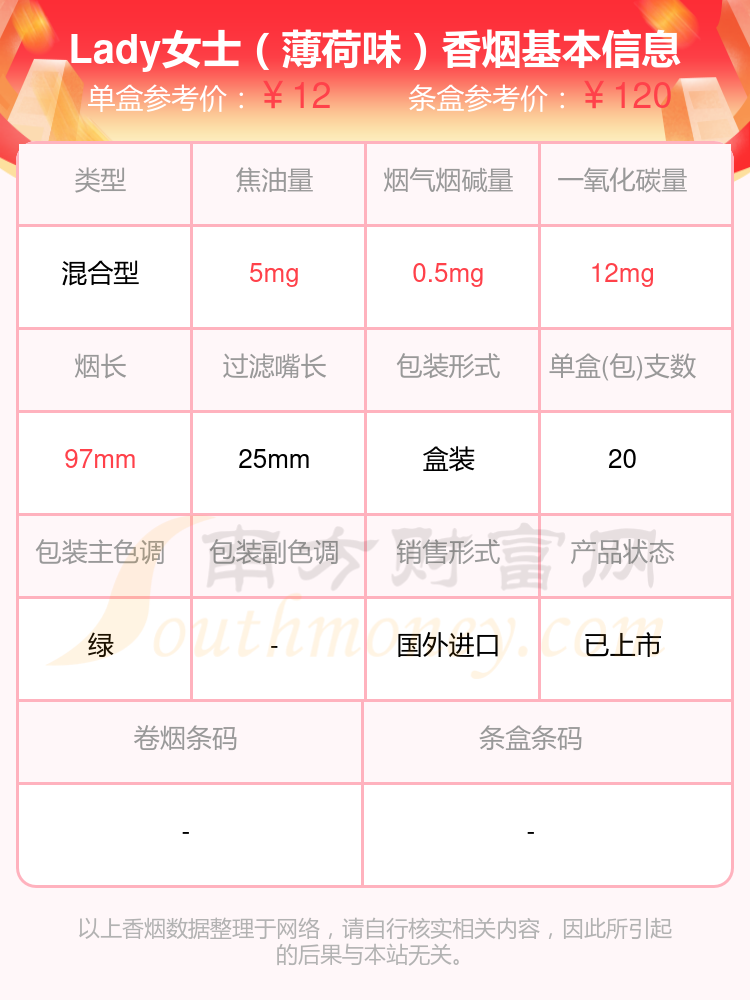 2、Lady女士(薄荷味)