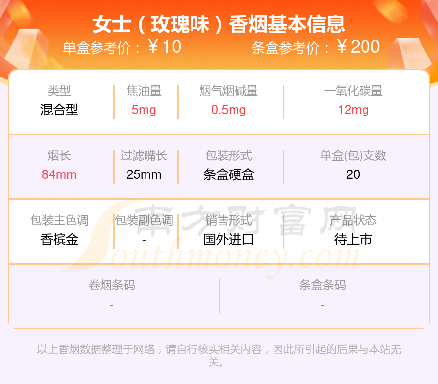 焦油量8mg以下的Lady(女士)香煙有哪些?擇煙網為大家整理盤點,分別有:女士(薄荷味)、Lady女士(薄荷味)、女士(玫瑰味)等,具體價格如下: