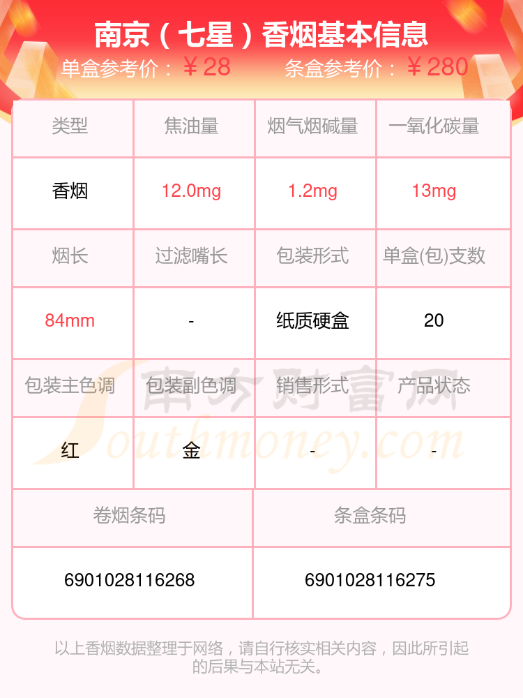 擇煙網(wǎng)為大家盤點了南京香煙尼古丁量低于4mg的,分別有南京(七星)、南京(精品)、南京(五星)、南京(紫樹)、南京(聽珍品)、南京(珍品)、南京(出口喜慶)、南京(硬珍品)、南京(九五)、南京(佳品)等,具體價格如下: