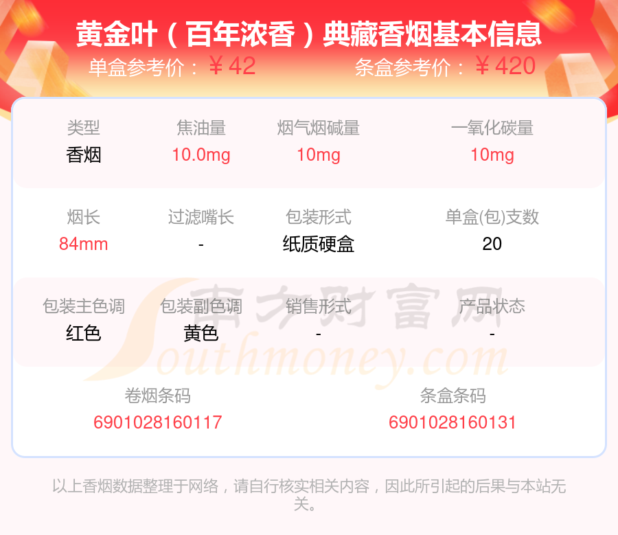 擇煙網(wǎng)為大家盤點了黃金葉香煙尼古丁量5mg以上的,分別有黃金葉(軟洛陽牡丹)、黃金葉(百年濃香)典藏等,具體價格如下: