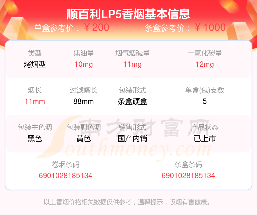 順百利香煙尼古丁高于3mg的煙有順百利XY5、順百利LP5等,具體價(jià)格如下: