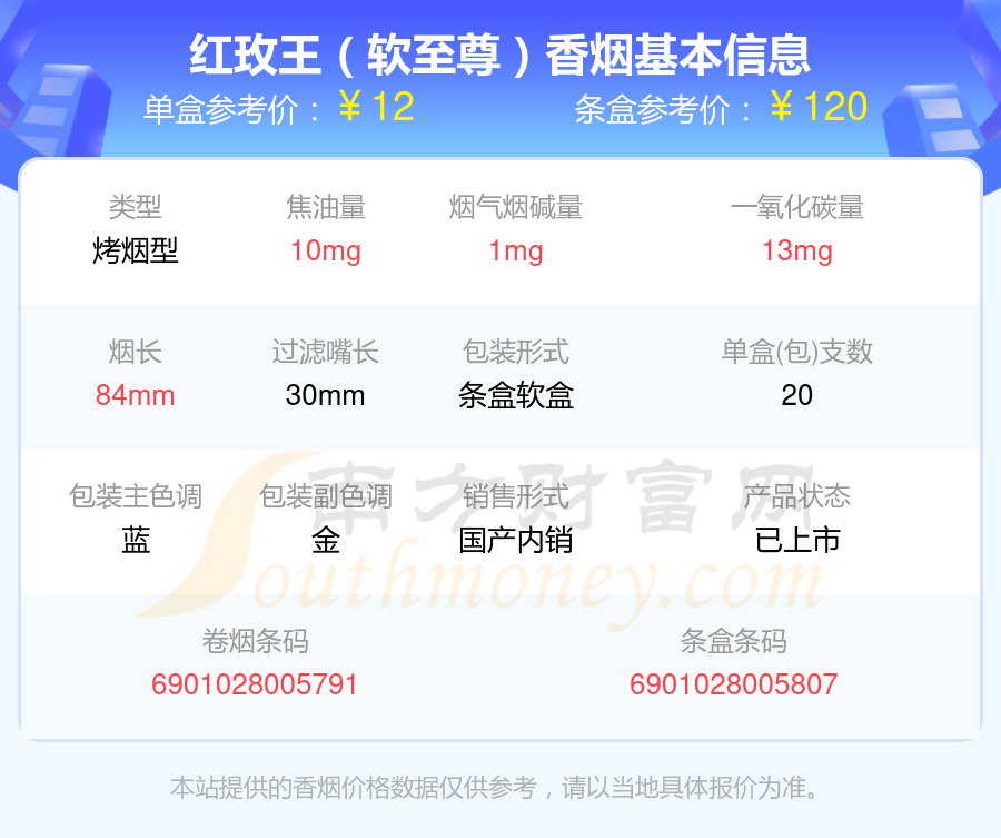 紅玫王香煙煙堿量2mg以下的煙有哪些?擇煙網(wǎng)為大家整理提供,分別有:紅玫王(硬至尊)、紅玫王(硬)、紅玫王(硬藍(lán))、紅玫王(軟至尊)等,具體價格如下: