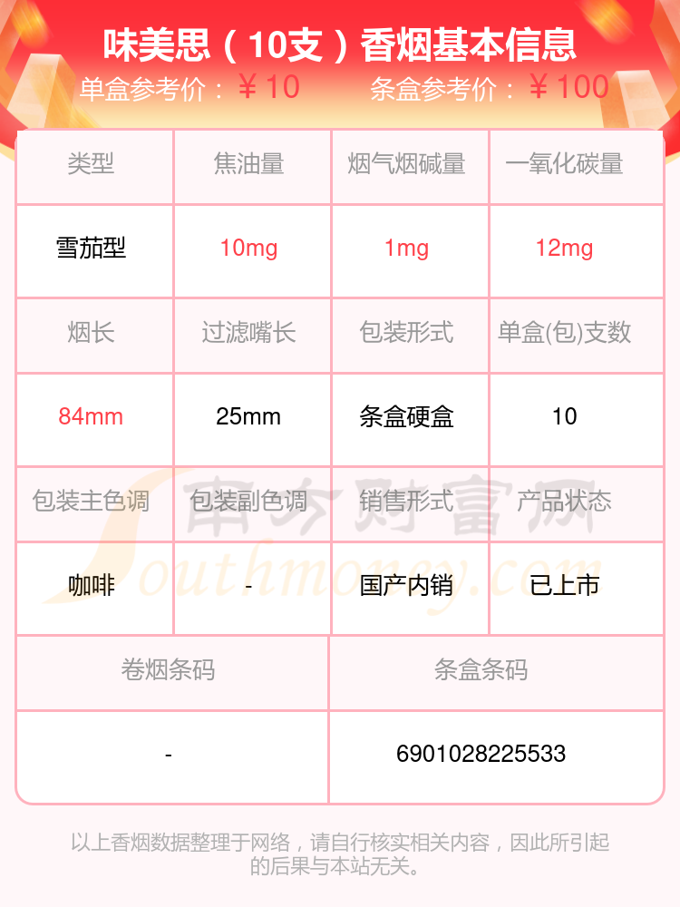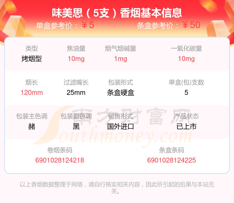 以上香煙數(shù)據(jù)整理于網(wǎng)絡(luò),請(qǐng)自行核實(shí)相關(guān)內(nèi)容,因此所引起的后果與本站無(wú)關(guān)。
