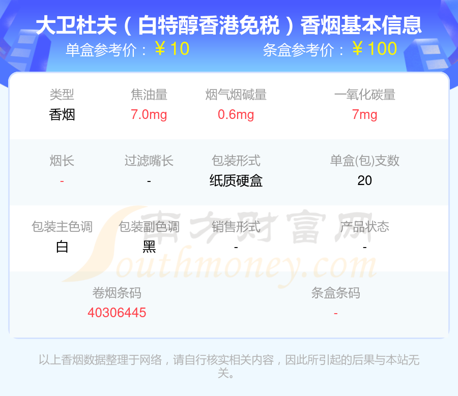 4、大衛(wèi)杜夫(白特醇香港免稅)