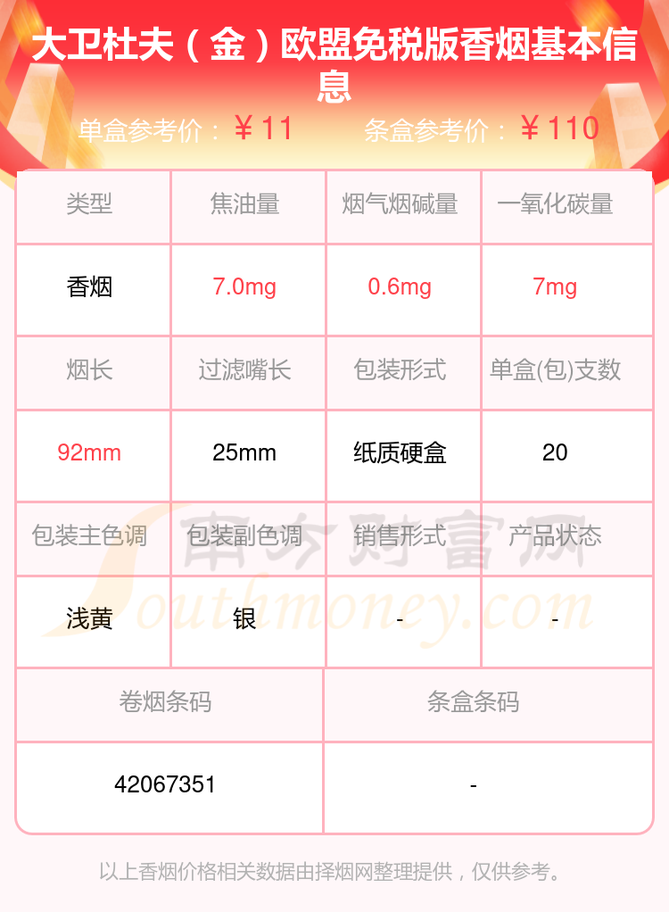 8、大衛(wèi)杜夫(金)歐盟免稅版