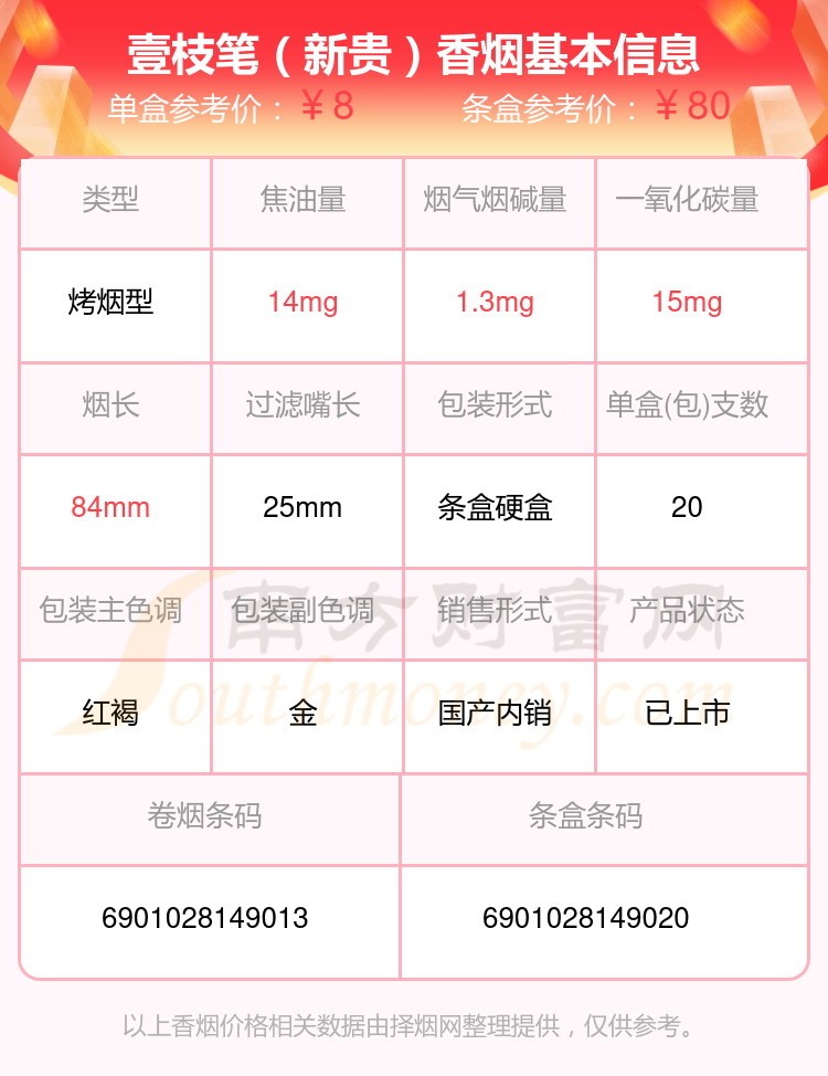 擇煙網(wǎng)為大家盤點(diǎn)了壹枝筆香煙尼古丁低于10mg的,分別有壹枝筆(新貴)、壹枝筆(新品)、壹枝筆(珍貴)、壹枝筆(華貴2代)、壹枝筆(宏圖)、壹枝筆(華貴)、壹枝筆(軟紅)等,具體價(jià)格如下: