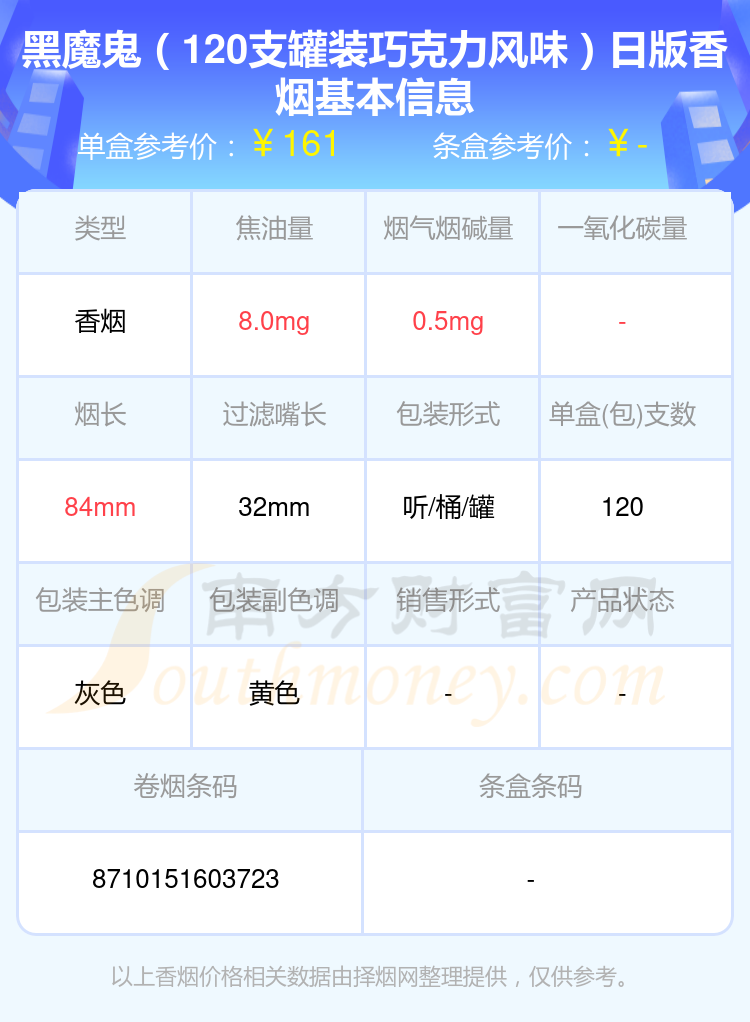 黑魔鬼(120支罐裝巧克力風(fēng)味)日版單盒參考價:161元