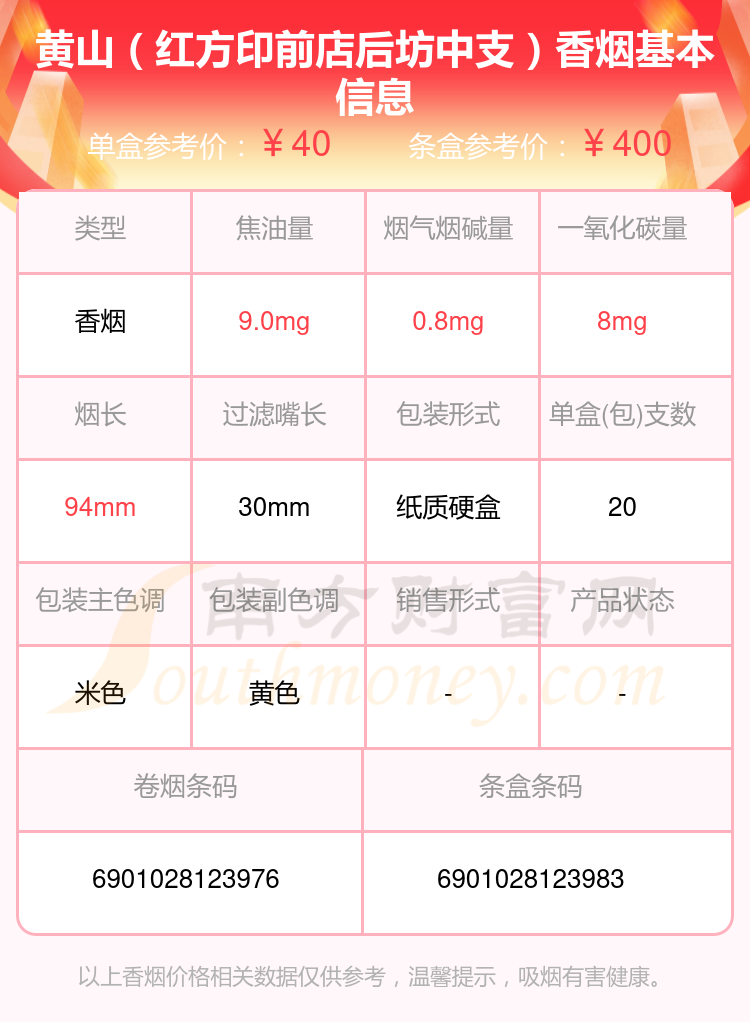 黃山(紅方印前店后坊中支)單盒參考價:40元