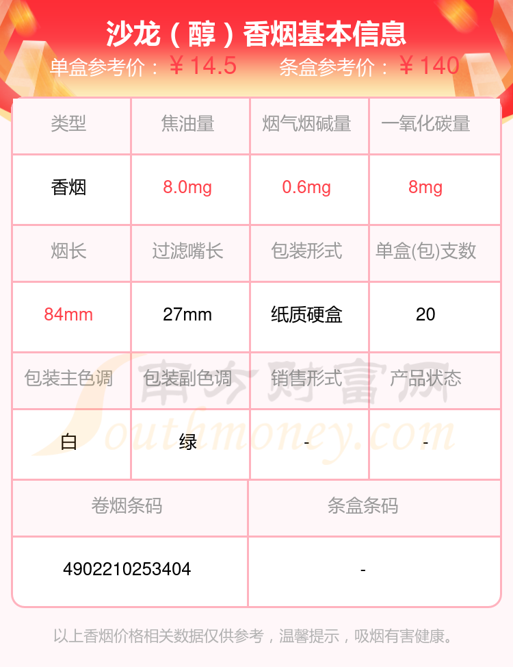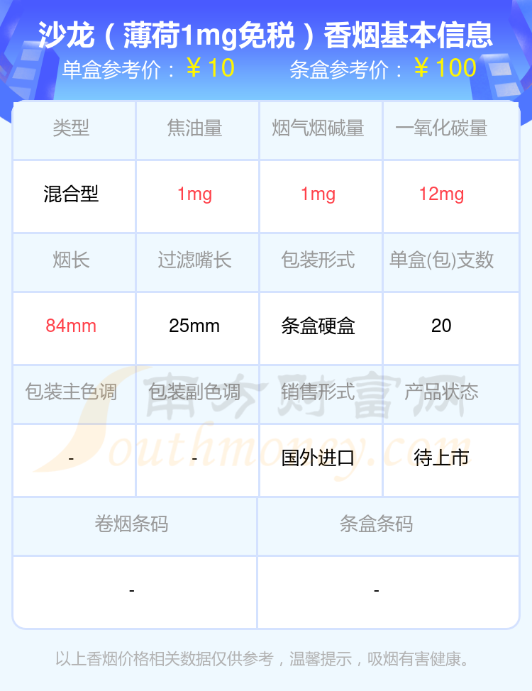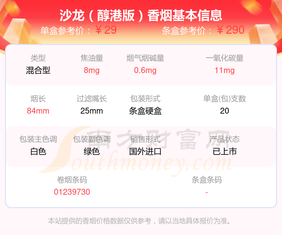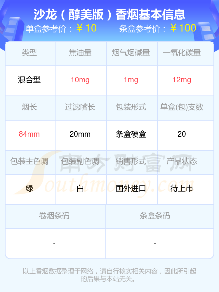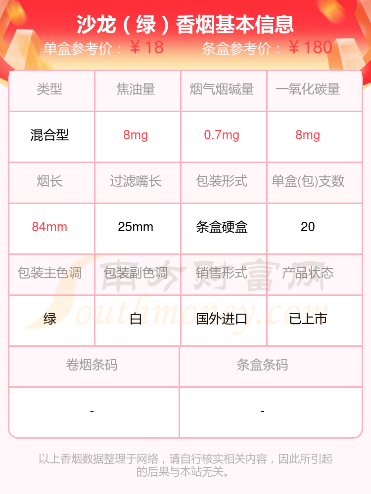 以上香煙數(shù)據(jù)整理于網(wǎng)絡(luò),請自行核實(shí)相關(guān)內(nèi)容,因此所引起的后果與本站無關(guān)。