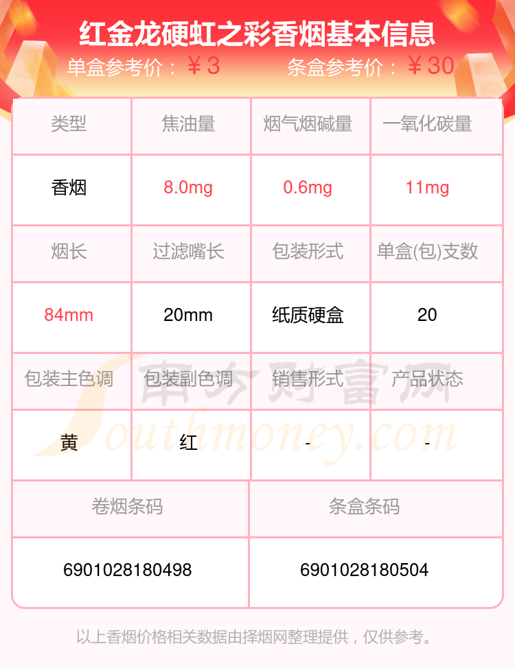 紅金龍硬虹之彩單盒參考價(jià):3元