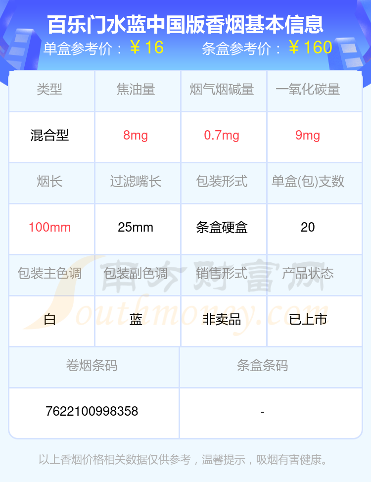 百樂門水藍(lán)中國(guó)版單盒參考價(jià):16元