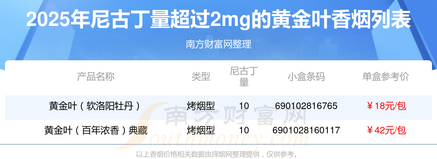 尼古丁量超過2mg的黃金葉香煙有哪些?擇煙網(wǎng)為大家整理盤點,分別有: