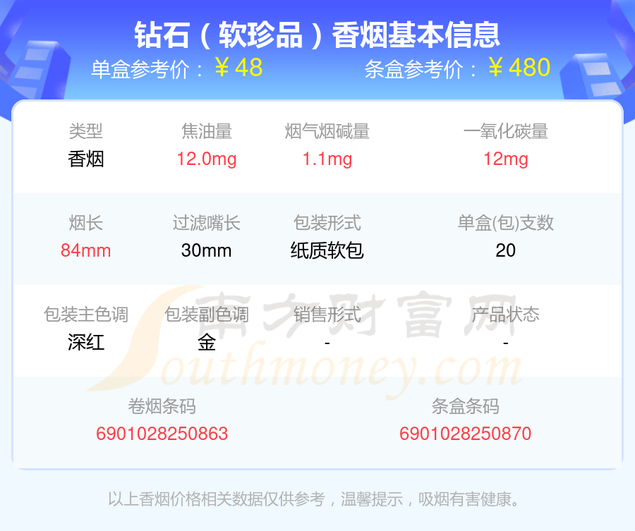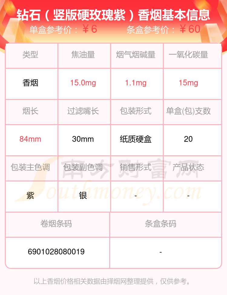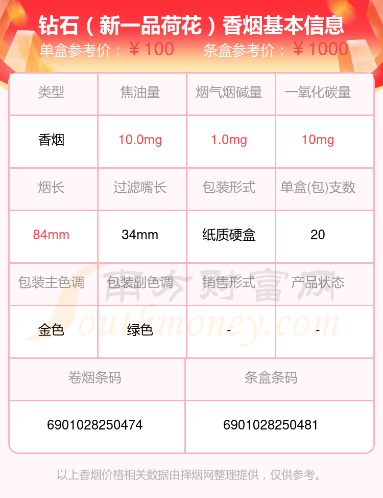擇煙網(wǎng)為大家盤點了鉆石香煙煙堿5mg以下的,分別有鉆石(軟珍品)、鉆石(豎版硬玫瑰紫)、鉆石(皇冠)、鉆石(雙喜)、鉆石(金鉆)、鉆石(迎賓)、鉆石(經(jīng)典醇和)、鉆石(新一品荷花)、鉆石(玫瑰2代)、鉆石(傳奇子龍)等,具體價格如下: