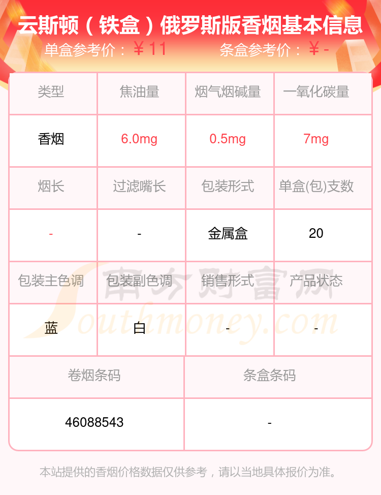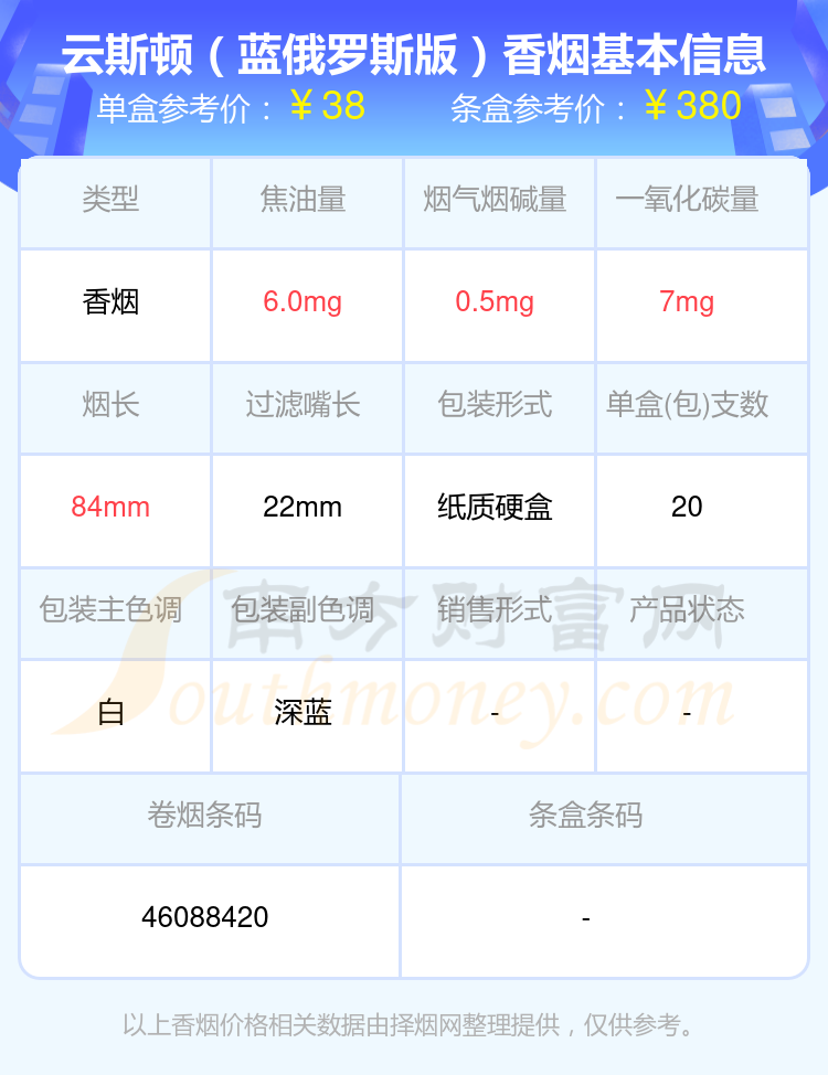 以上香煙數(shù)據(jù)整理于網(wǎng)絡(luò),請自行核實相關(guān)內(nèi)容,因此所引起的后果與本站無關(guān)。