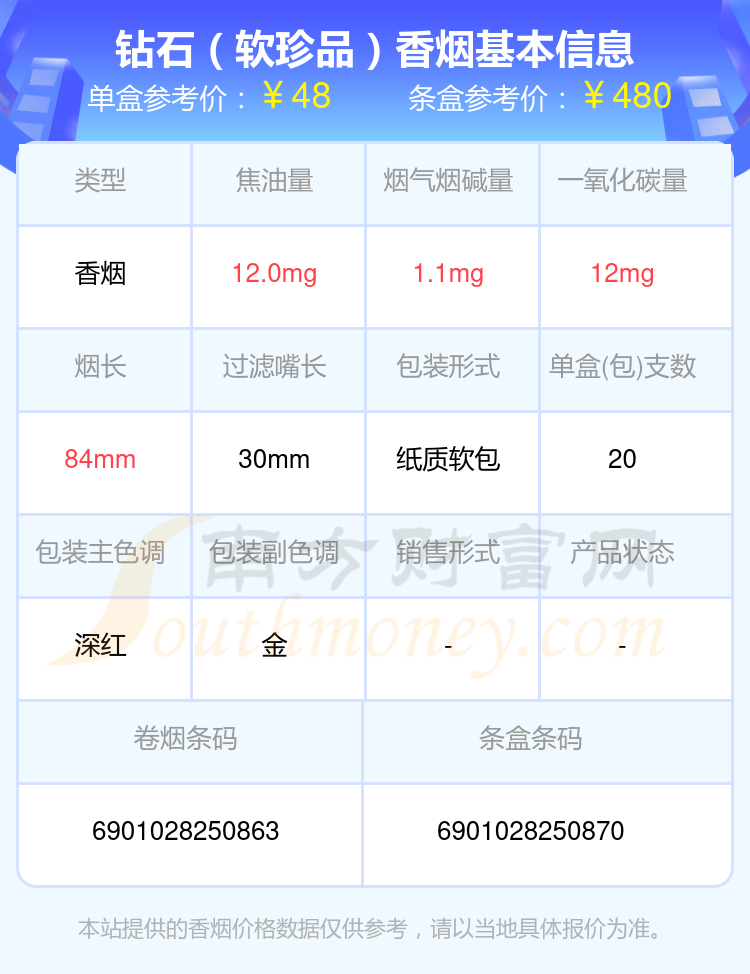鉆石香煙40到60元的有哪些?擇煙網(wǎng)為大家整理提供,分別有: