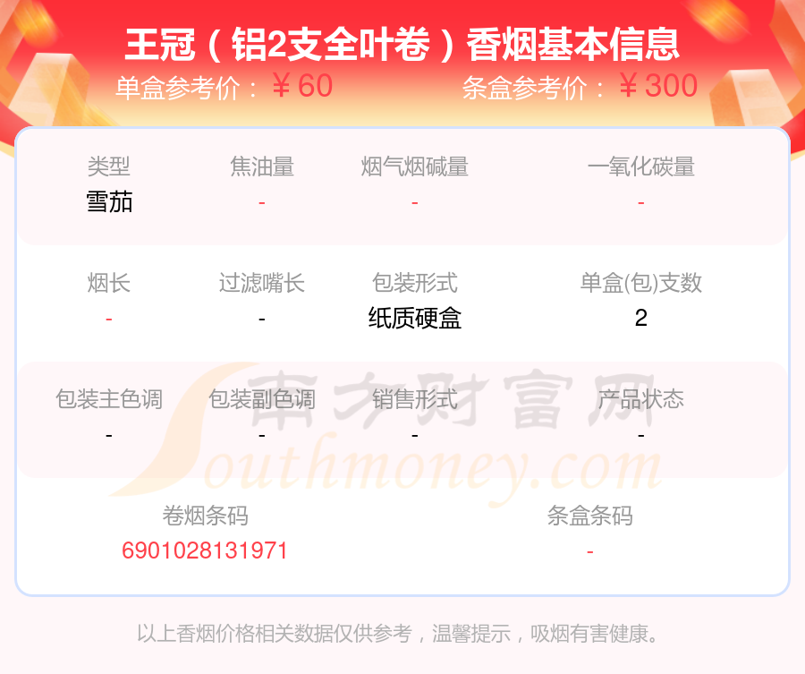 以上香煙價格相關數(shù)據(jù)僅供參考,溫馨提示,吸煙有害健康。