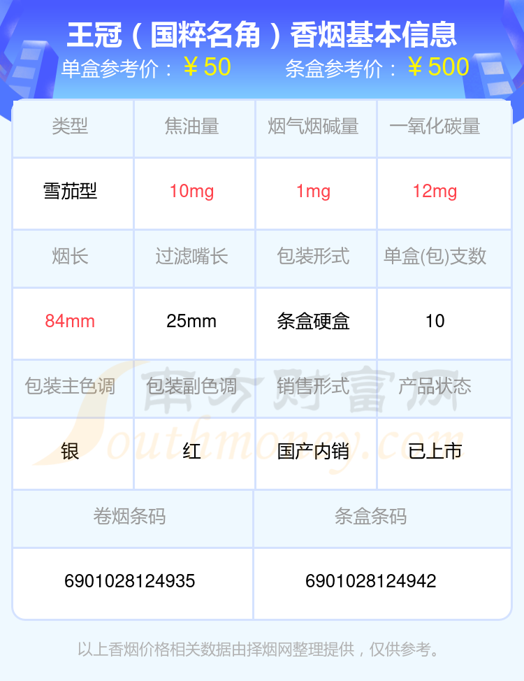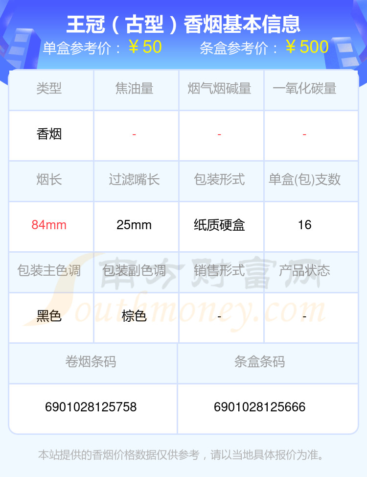 擇煙網(wǎng)為大家盤點了40元至70元左右的王冠香煙,分別有王冠(鋁2支全葉卷)、王冠(古型)、王冠(原味1號)、王冠(國粹名角)、王冠(原味3號鐵盒)等,具體價格如下: