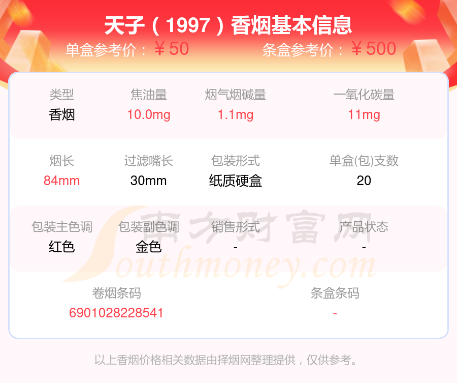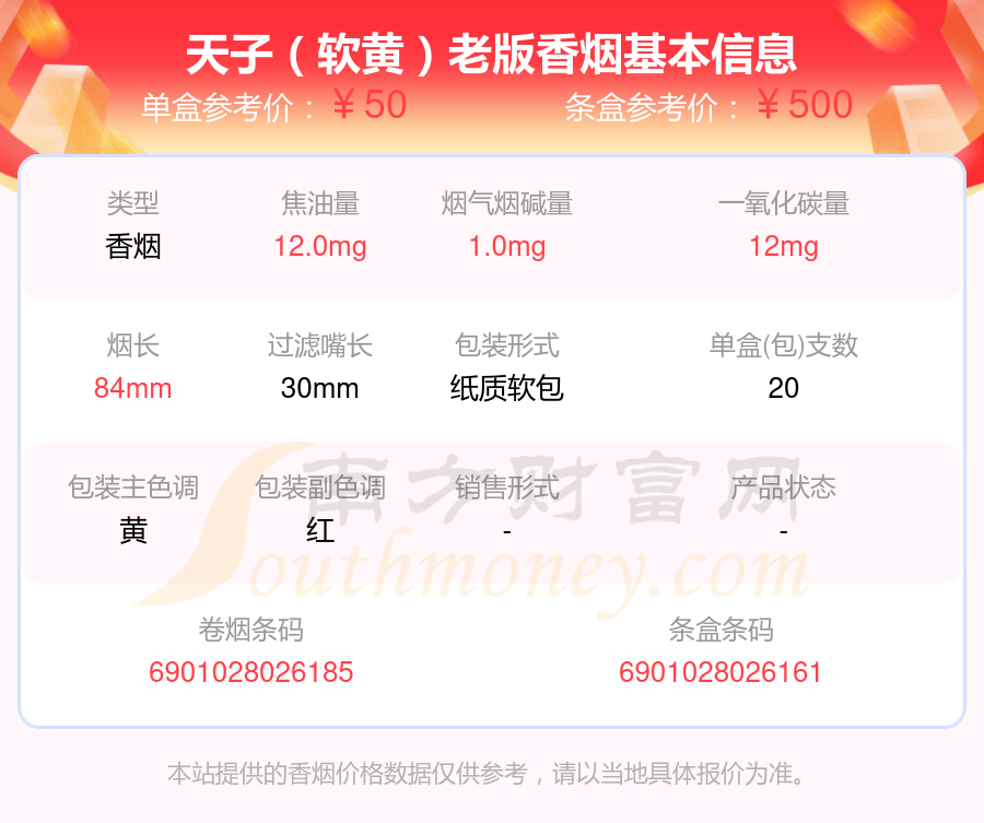 天子香煙是川渝中煙的超高端品牌,天子從問世就引起轟動(dòng),起初天子只有一個(gè)規(guī)格,零售價(jià)定在2000元/條,現(xiàn)在天子發(fā)展出兩個(gè)規(guī)格天子(軟,硬)系列,天子硬(天子硬黃亦即天子全開式)的零售價(jià)為1500元/條,天子軟(天子軟黃)的零售價(jià)為500元/條。天子取意自“天神之子”,采用明黃色系和龍?jiān),將東方文化體現(xiàn)得淋漓盡致。