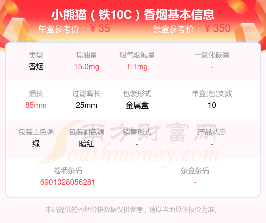 30元至60元左右的小熊貓香煙有哪些?擇煙網(wǎng)為大家整理盤點(diǎn),分別有:小熊貓(鐵10C)、小熊貓(硬盒普通)等,具體價(jià)格如下: