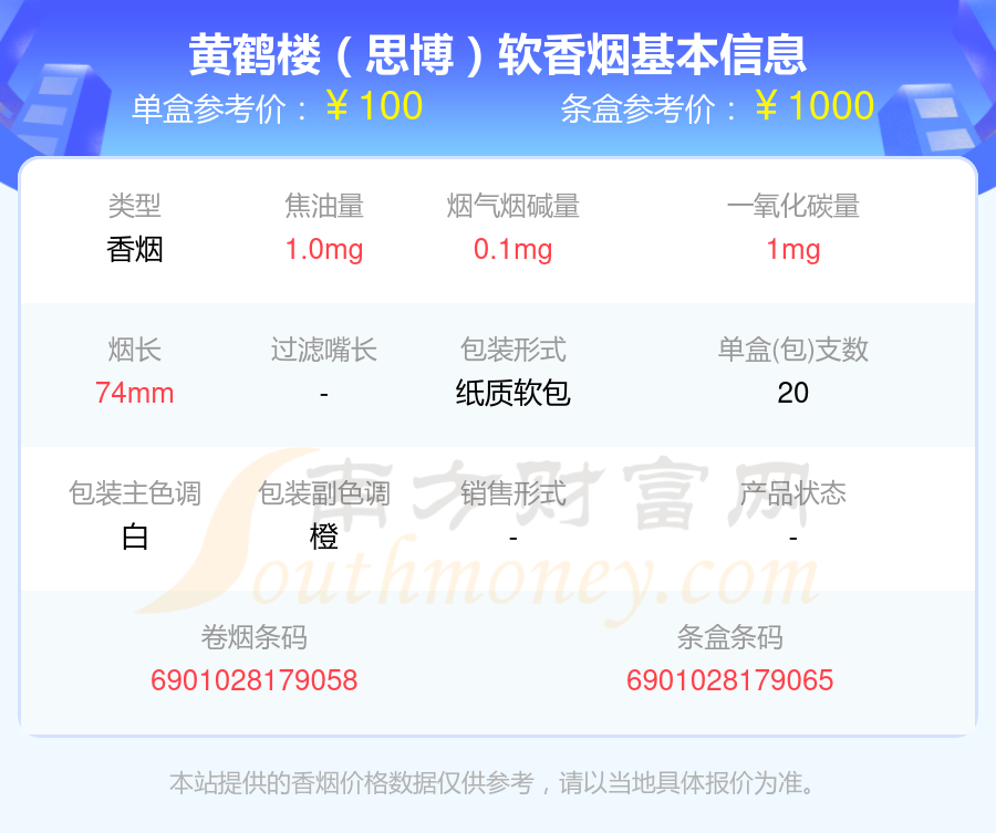 黃鶴樓(思博)軟條盒參考價(jià):1000元