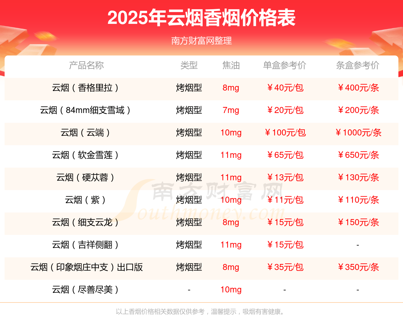 以上香煙價格相關(guān)數(shù)據(jù)由擇煙網(wǎng)整理提供,僅供參考。
