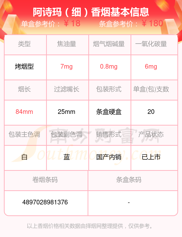 擇煙網(wǎng)為大家盤點了10元~20元左右的阿詩瑪香煙,有以下這些:
