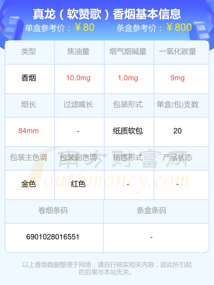 真龍(金韻)參考價(jià)80.0元/包、真龍(軟贊歌)參考價(jià)80.0元/包等。