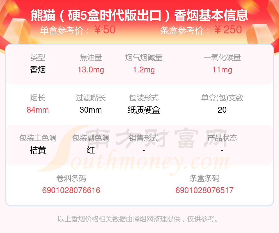 1、熊貓(硬5盒時代版出口)