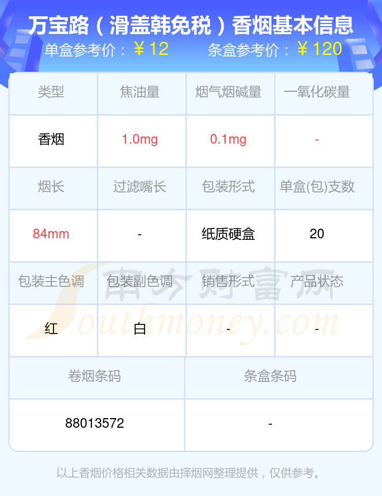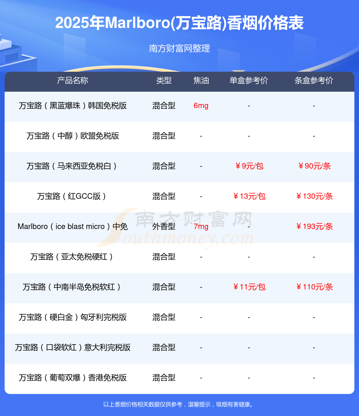 萬(wàn)寶路(滑蓋韓免稅)單盒參考價(jià):12元
