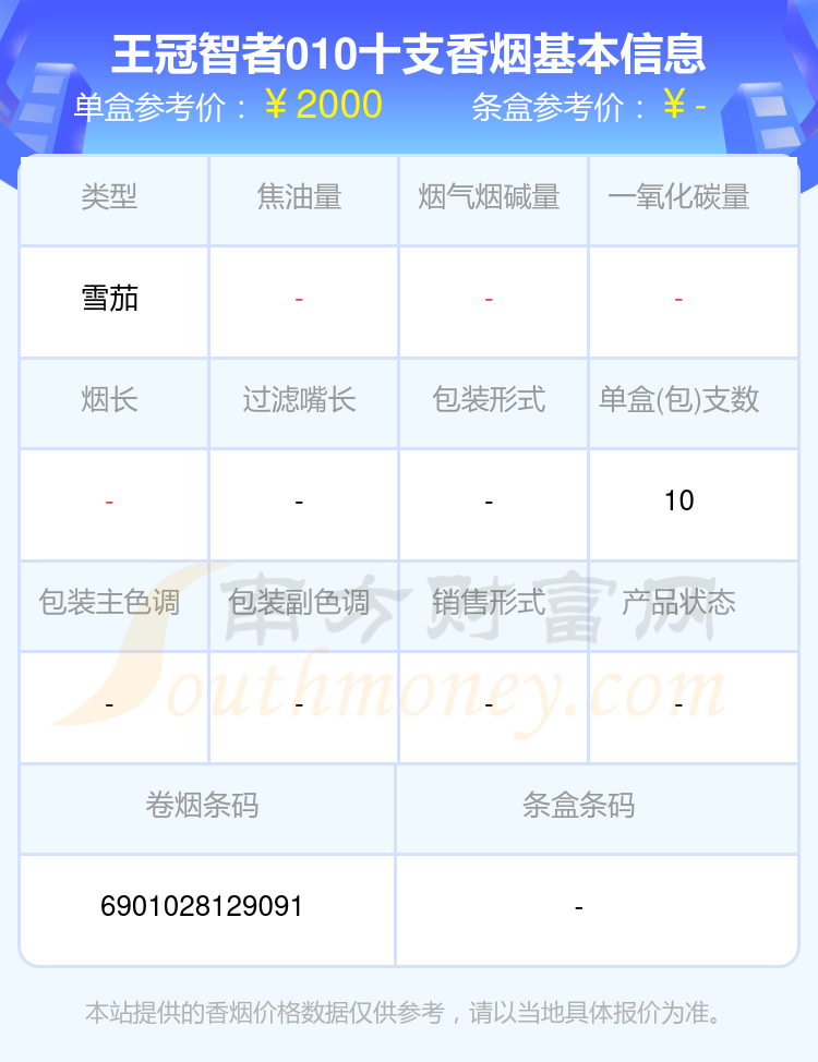 王冠智者010十支香煙網(wǎng)友評分:口味6.7分,外觀7.5分,性價比5.8分,綜合得分6.7分。