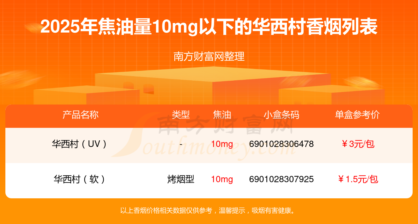 焦油量10mg以下的華西村香煙有哪些?擇煙網(wǎng)為大家整理盤點,分別有: