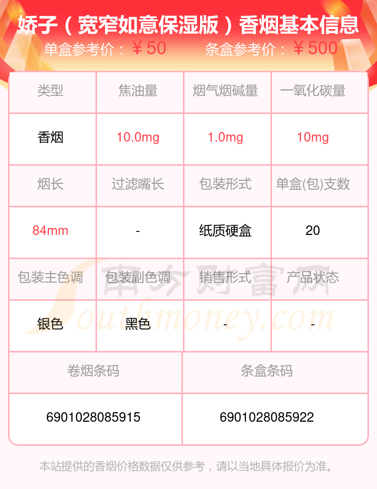 嬌子(寬窄如意保濕版)條盒參考價(jià):500元