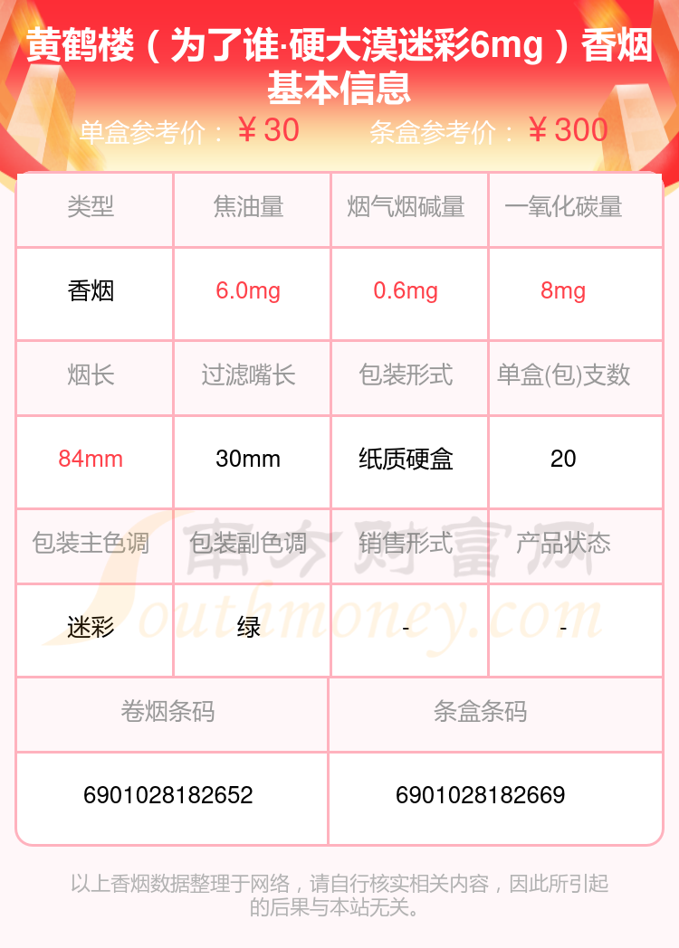 黃鶴樓(為了誰·硬大漠迷彩6mg)單盒參考價:30元