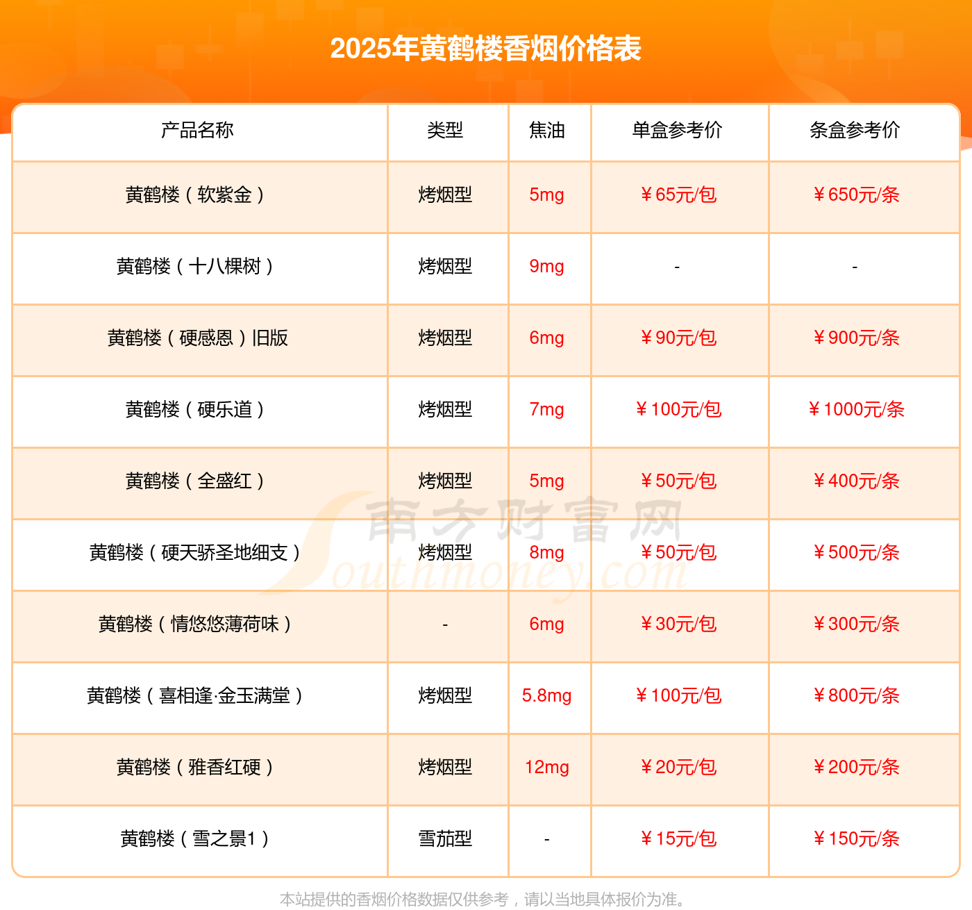 以上香煙數(shù)據(jù)整理于網(wǎng)絡,請自行核實相關內(nèi)容,因此所引起的后果與本站無關。