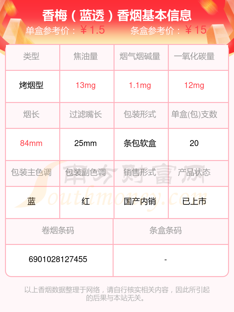 香梅(藍(lán)透)參考價1.5元/包、香梅(紅透滿堂)參考價1.5元/包等。