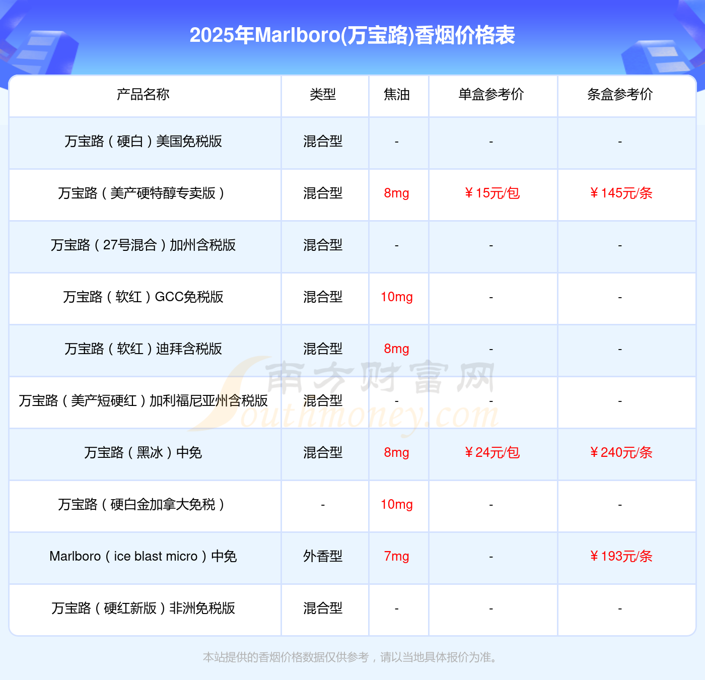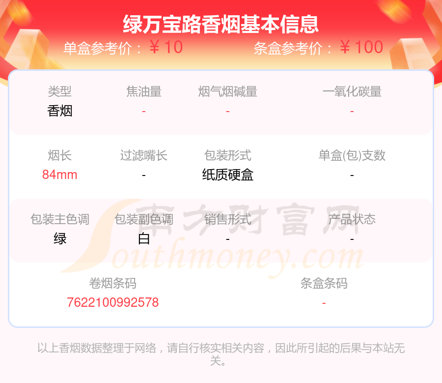綠萬(wàn)寶路單盒參考價(jià):10元