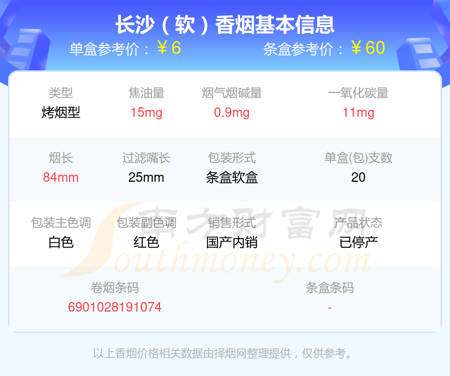 長(zhǎng)沙(喜)參考價(jià)10元/包、長(zhǎng)沙(軟)參考價(jià)6元/包等。