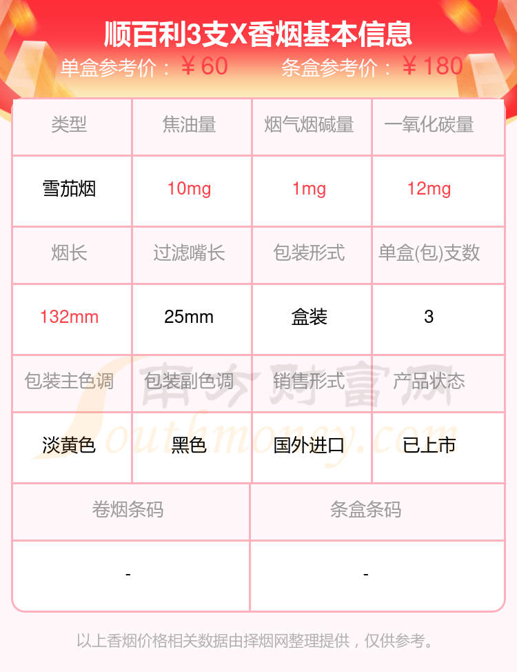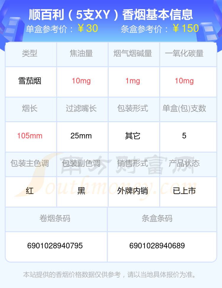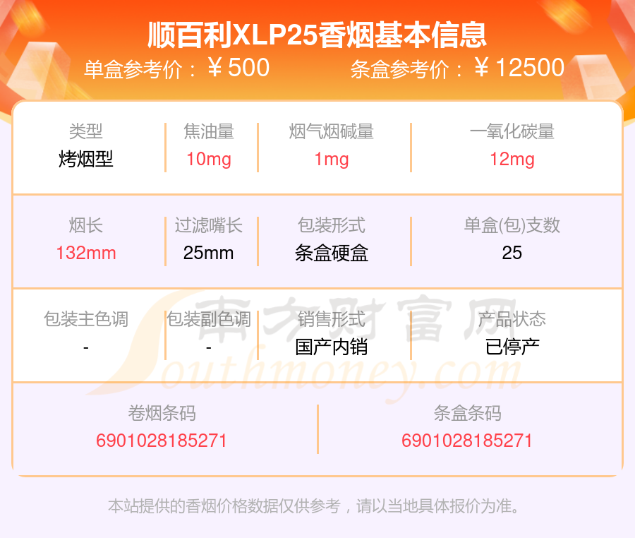 順百利XLP25參考價(jià)500元/包、順百利3支X參考價(jià)60元/包、順百利10支LP參考價(jià)360元/包、順百利(5支XY)參考價(jià)30元/包等。