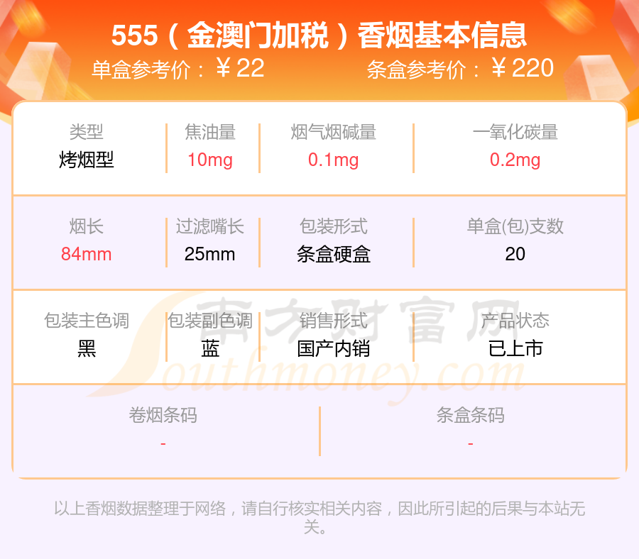 以上香煙數(shù)據(jù)整理于網(wǎng)絡(luò),請自行核實相關(guān)內(nèi)容,因此所引起的后果與本站無關(guān)。