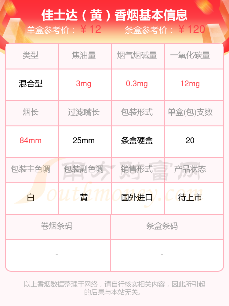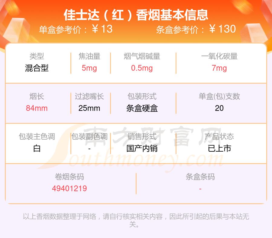 以上香煙數(shù)據(jù)整理于網(wǎng)絡(luò),請(qǐng)自行核實(shí)相關(guān)內(nèi)容,因此所引起的后果與本站無(wú)關(guān)。